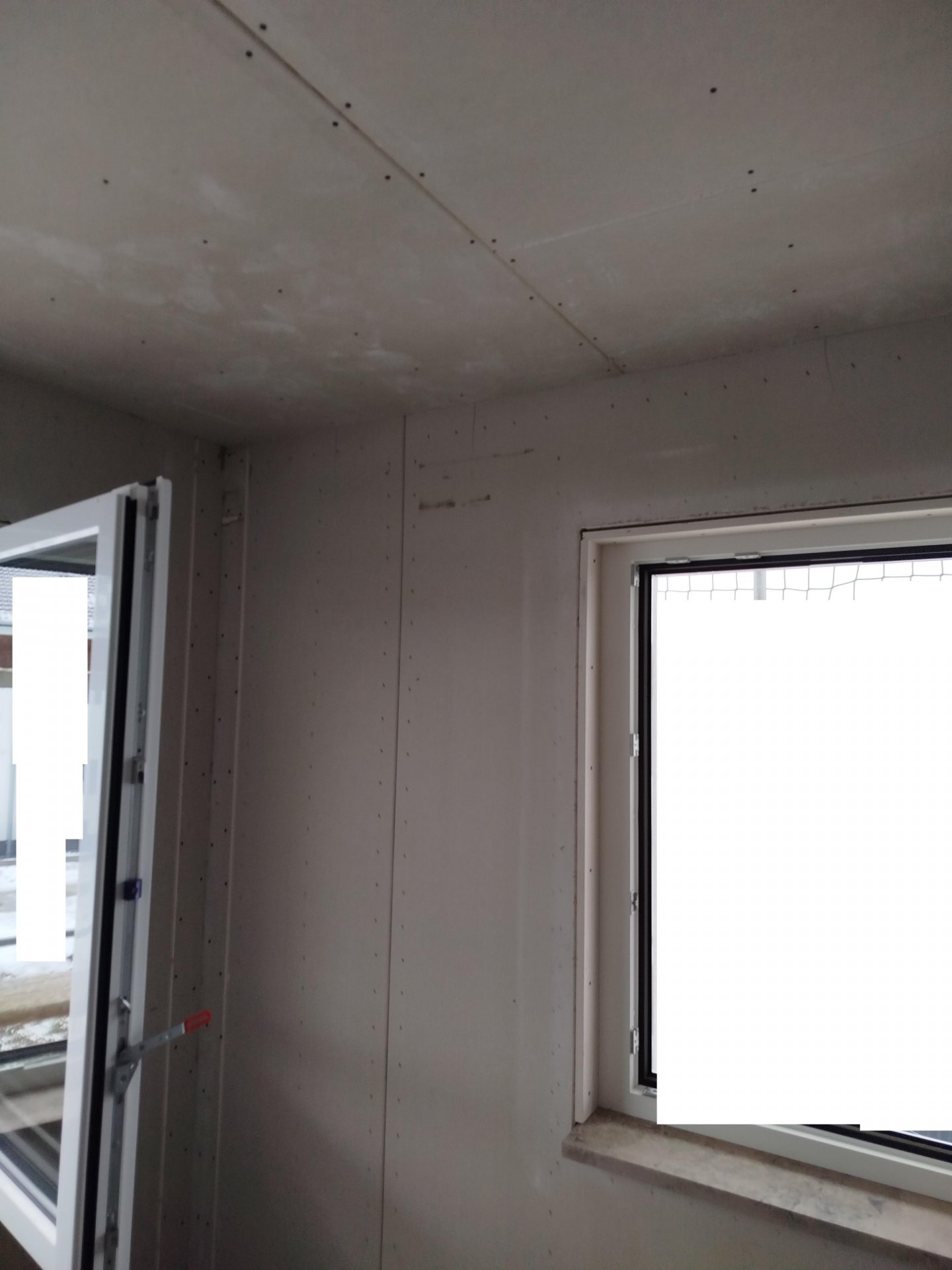Was ist bei den Fenster passiert, sind die falsch abgedichtet worden, die Fensterbänke haben sich alle um 4-8mm gesenkt, darunter ist nur 2kSchaum, nun drückt natürlich die innere Fensterbank auf das Fenster, zudem sind einige Lose.