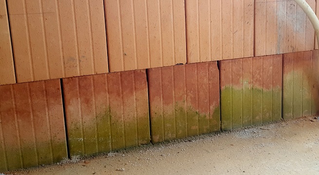 untere Steinreihe (Poroton gefüllt) war richtig nass und hat nach kurzer Zeit unten grünen Schimmel bekommen.