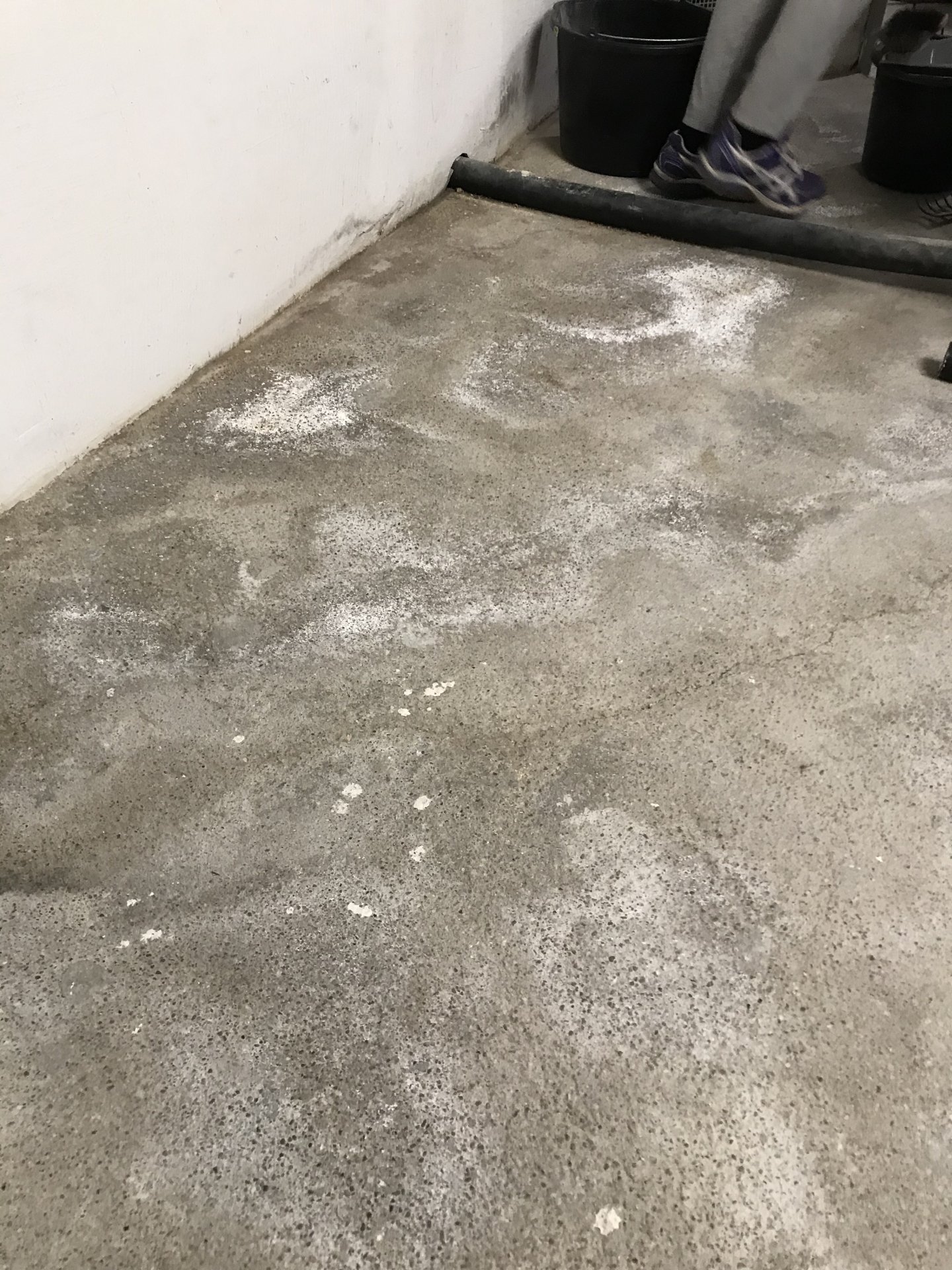 Hatten im Keller einen Wasserschaden, der Warmwasserspeicher war defekt. Der Schaden wurde behoben. Nun haben wir weißen Schimmel auf dem Boden. Diesen möchten wir gerne beseitigen. (siehe Fotos) Wie würdet ihr das machen?