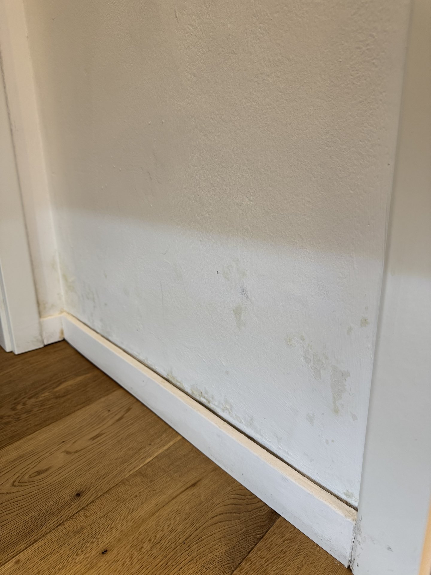 Diskutiere Schimmelbildung über Fußleiste ➔ Sind die (defekten?) Fugen in der Dusche schuld? im Sanitär Forum im Bereich Haustechnik; Hallo Zusammen, ich habe in meiner Wohnung ein Problem mit einer Wand im Flur – unten zeigen sich Feuchtigkeitsflecken und inzwischen auch etwas...