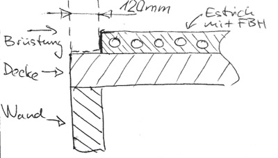 im Dachgeschoss möchte ich um den Deckendurchbruch auf zwei Seiten eine Brüstung mauern.