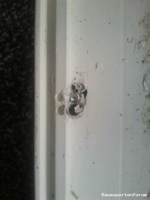 Bei der Abnahme hat uns der Bauträger zugesichert, dass die Reste herausgebohrt werden damit sie nicht anfangen zu rosten. Jetzt war von der Fensterfirma ein Monteur da und hat einfach neben den gebrochenen Resten neu gebohrt. Auf den Hinweis hin dass die gebrochenen Reste entfernt werden müssen hat er gesagt dass dies nicht machbar ist. Er hat es trotzdem versucht aber nicht geschafft.