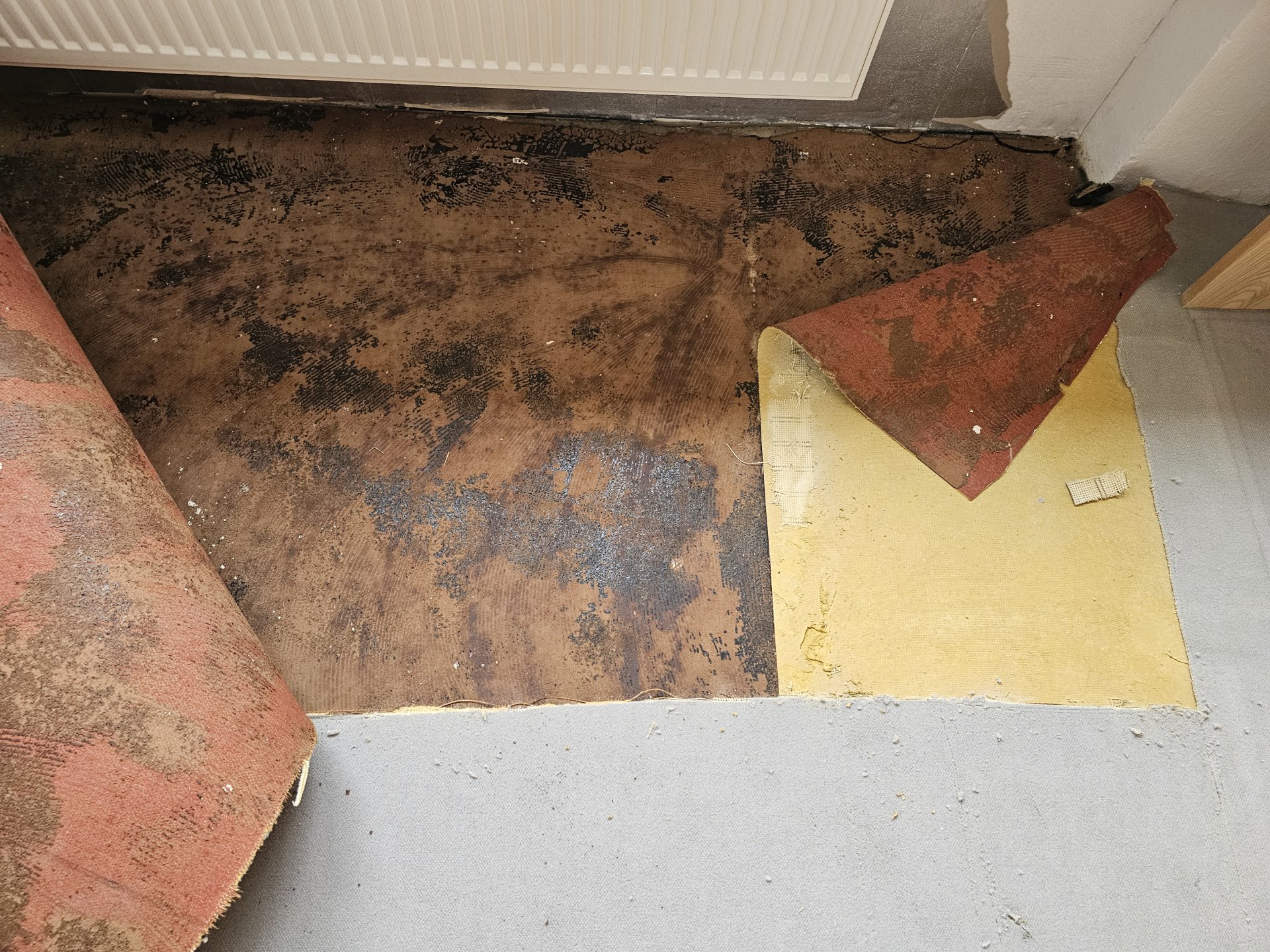Diskutiere Schwarz Rot Estrich unten Altem Teppich Boden im Estrich und Bodenbeläge Forum im Bereich Neubau; Hallo, gerade renoviere ich meiner Boden und plane Alter Teppichboden mit Klick-Vinyl zu ersetzten. Heute habe ich angefangen und erwartet...