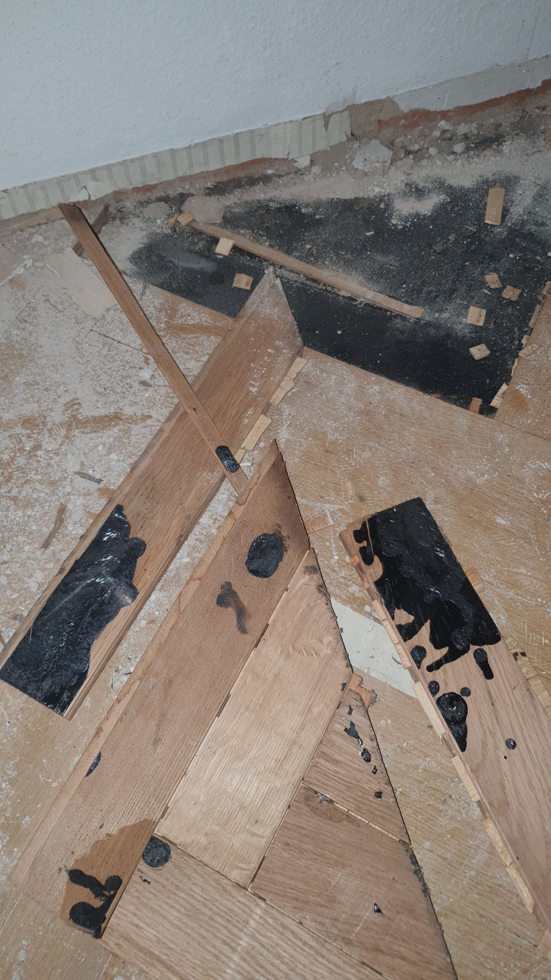 Schwarzer Bodenbelag unter Küchenfliesen 50er Jahre Bau: Guten Tag, wir wollen in der Küche Fliesen entfernen lassen und Parkett legen. Das Haus wurde in Frankfurt in den fünfziger Jahren gebaut, laut... -