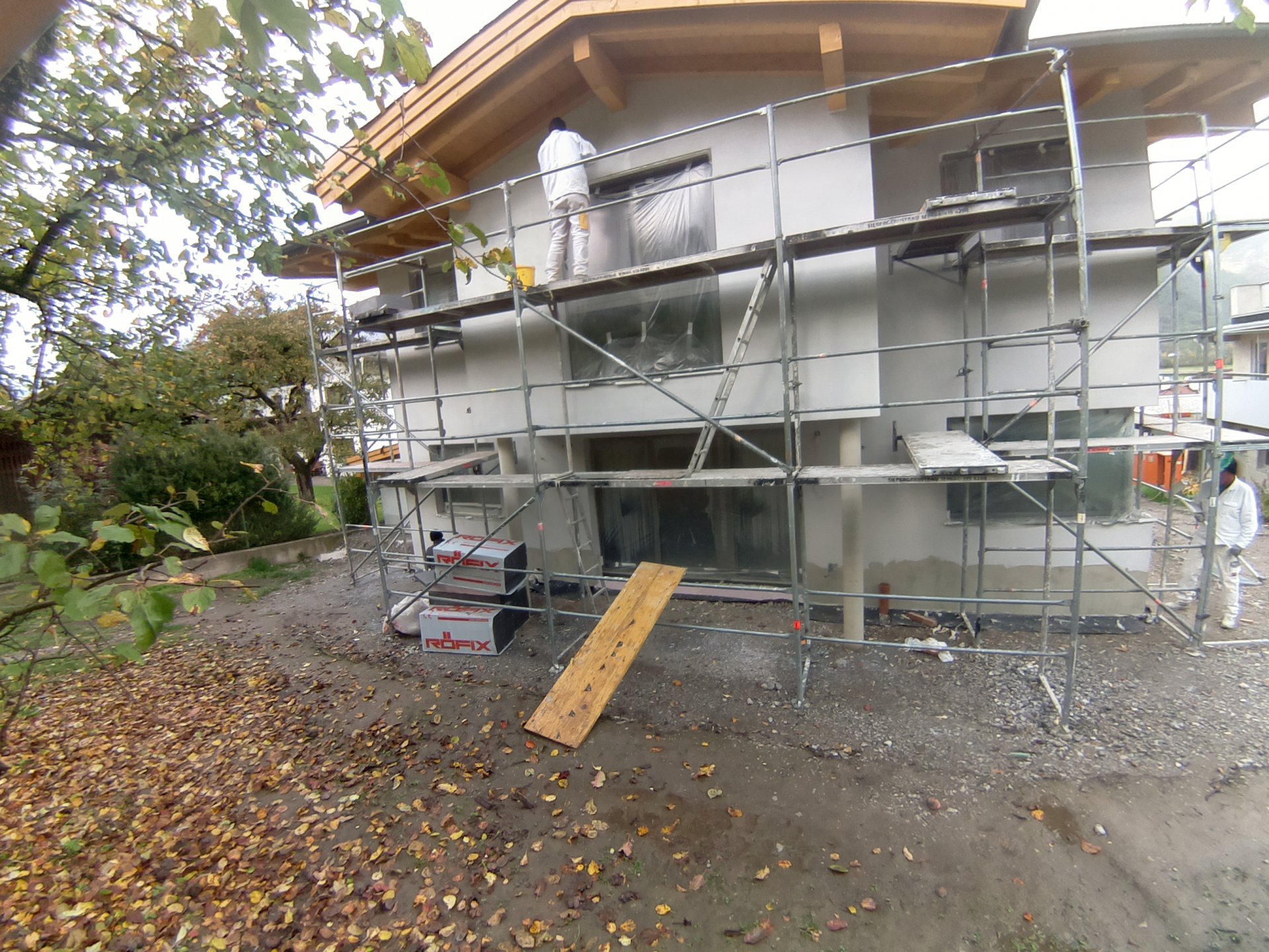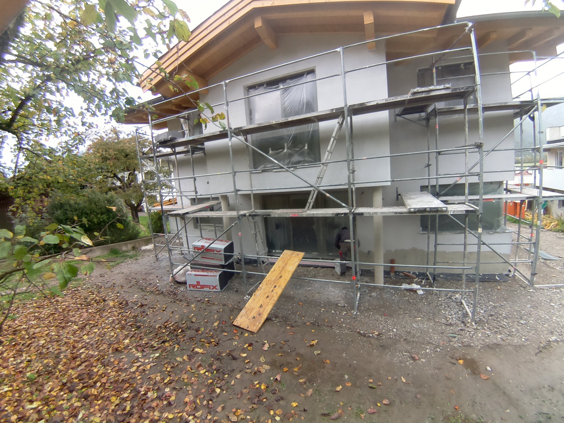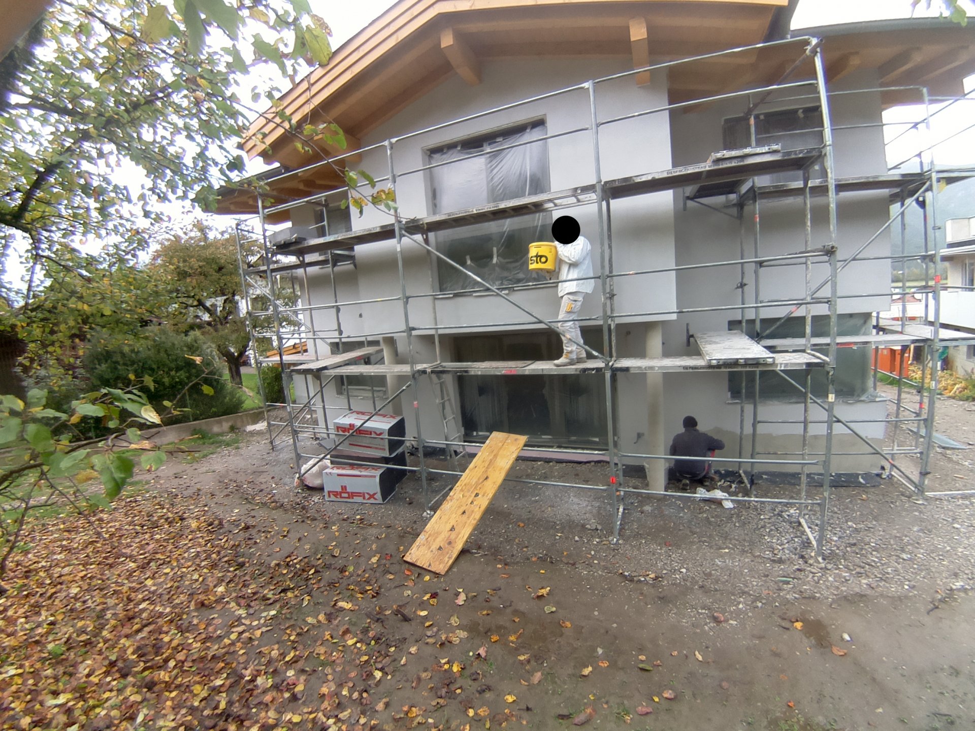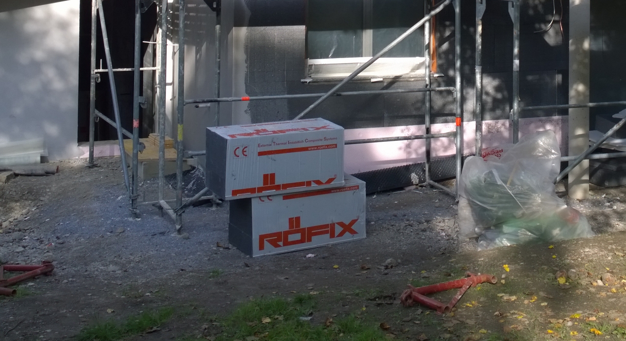WDVS mit Silikatputz mit Holzriemchen bekleben