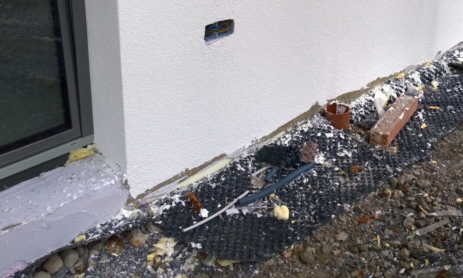Diskutiere Silikatputz löst sich im Sockelbereich ab im Außenwände / Fassaden Forum im Bereich Neubau; Hallo, nach 8 Jahren fängt sich nun im Sockelbereich der Silikatputz ablösen an. Da war sogar eine Regenwurmfamilie drunter. :yikes [ATTACH] Nun...