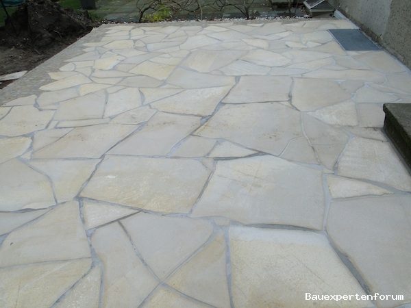 Diskutiere Solnhofener Kalksteinplatten falsch verfugt ? (Zementschleier) im Tiefbau Forum im Bereich Neubau; Hallo liebe Terrassenbauer und Naturstein-Experten, ich habe mir von einer Baufirma eine Terrasse aus polygonalen, bruchrauhen Solnhofener...
