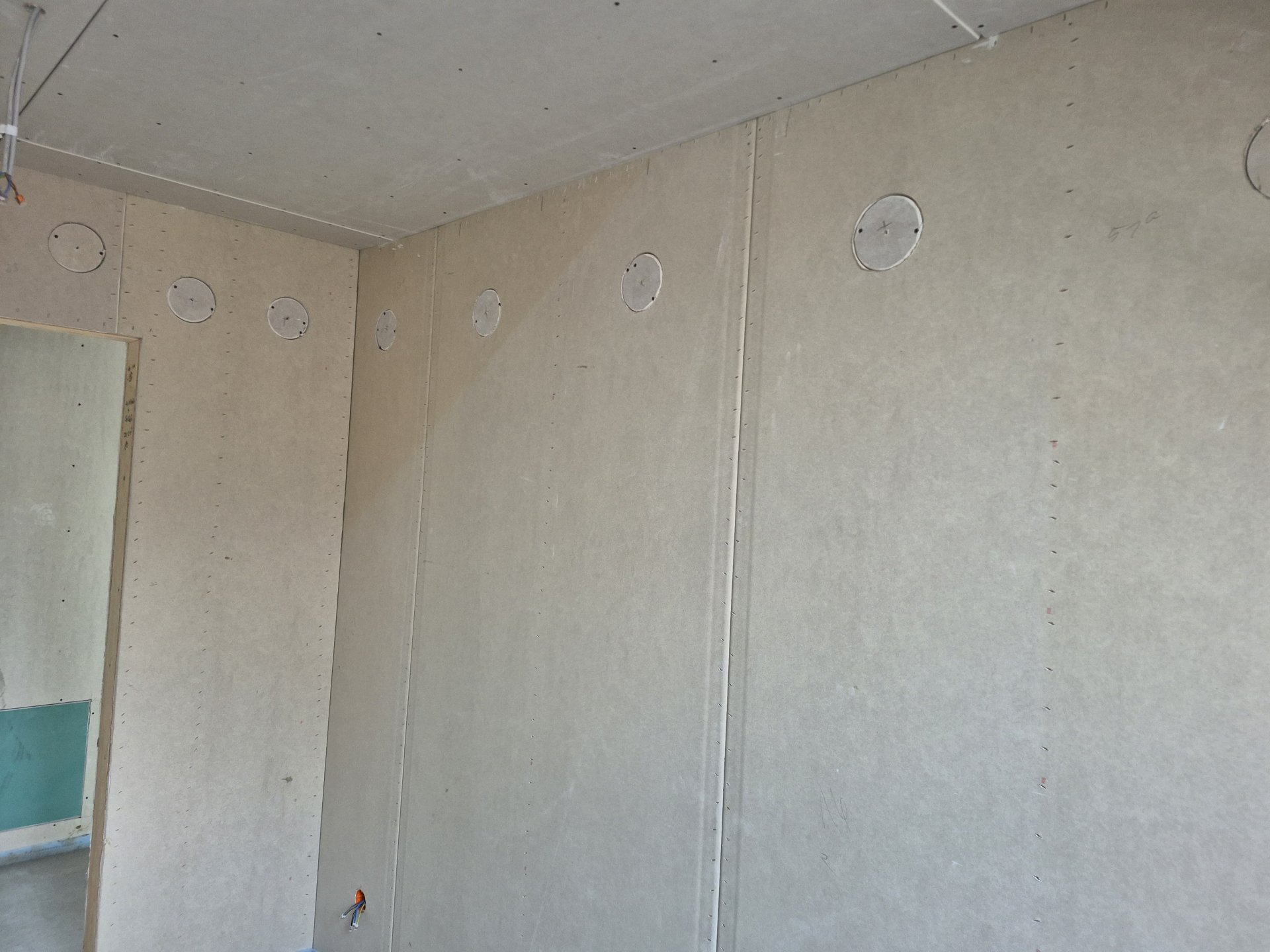 1. Der runde Kreis (Loch für Einblasdämmung) --> das spachtele ich einfach zu, wie die Schraubenköpfe ohne Fugendeckstreifen, richtig?