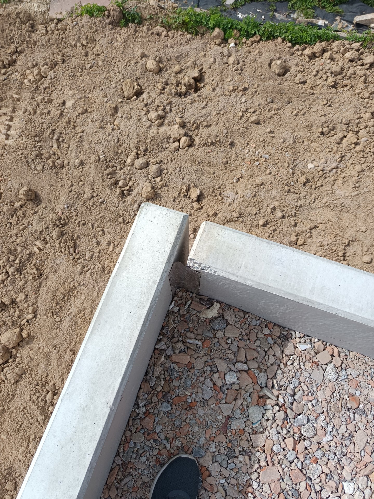 wir haben uns für unsere Terrasse L-Steine setzen lassen. Zwei Mauern wurden gesetzt. Dazwischen ist nun ein Spalt der noch oben größer wird.