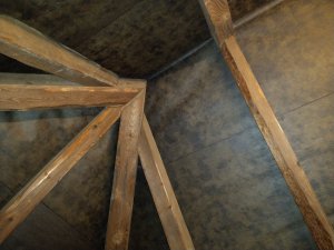 Mit Vollholz verschraubt würde man natürlich auch die vorhandenen Dachkonstruktionsbalken verstärken.