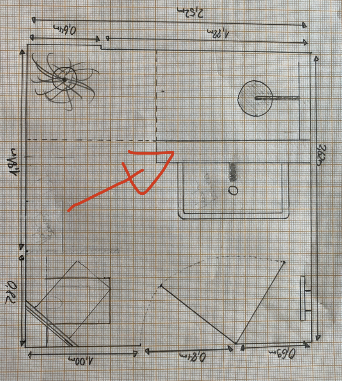 Auf dem Bild sehr ihr ganz gut was ich meine - es geht um die Wand mit dem roten Pfeil.