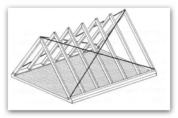 Stahlband über Kreuz über Sparren