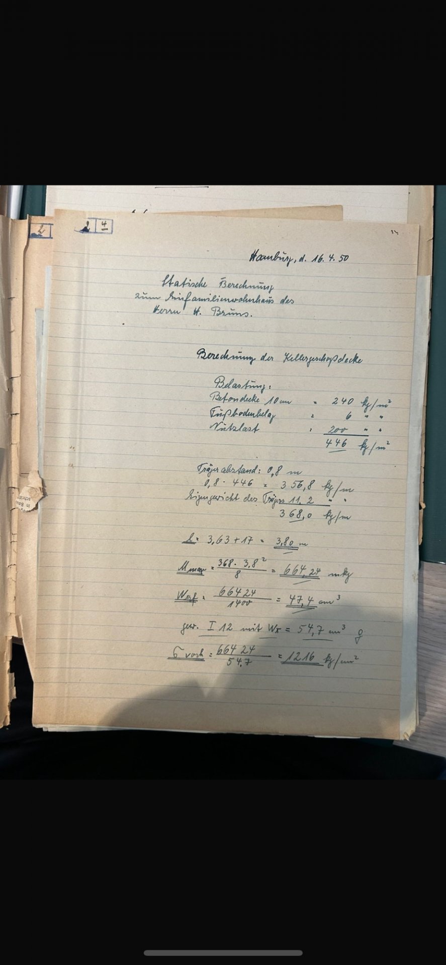 Jetzt meine Frage: Erlaubt die Statik von 1950 das Gießen von Beton/Estrich darauf, oder verbietet die Statik dies? Siehe Anhang für die Statikberechnung. Zusätzlich beachte, dass der Estrich/Beton an einigen Stellen nur 6-7 cm dick ist und nicht über 10 cm hinausgeht.