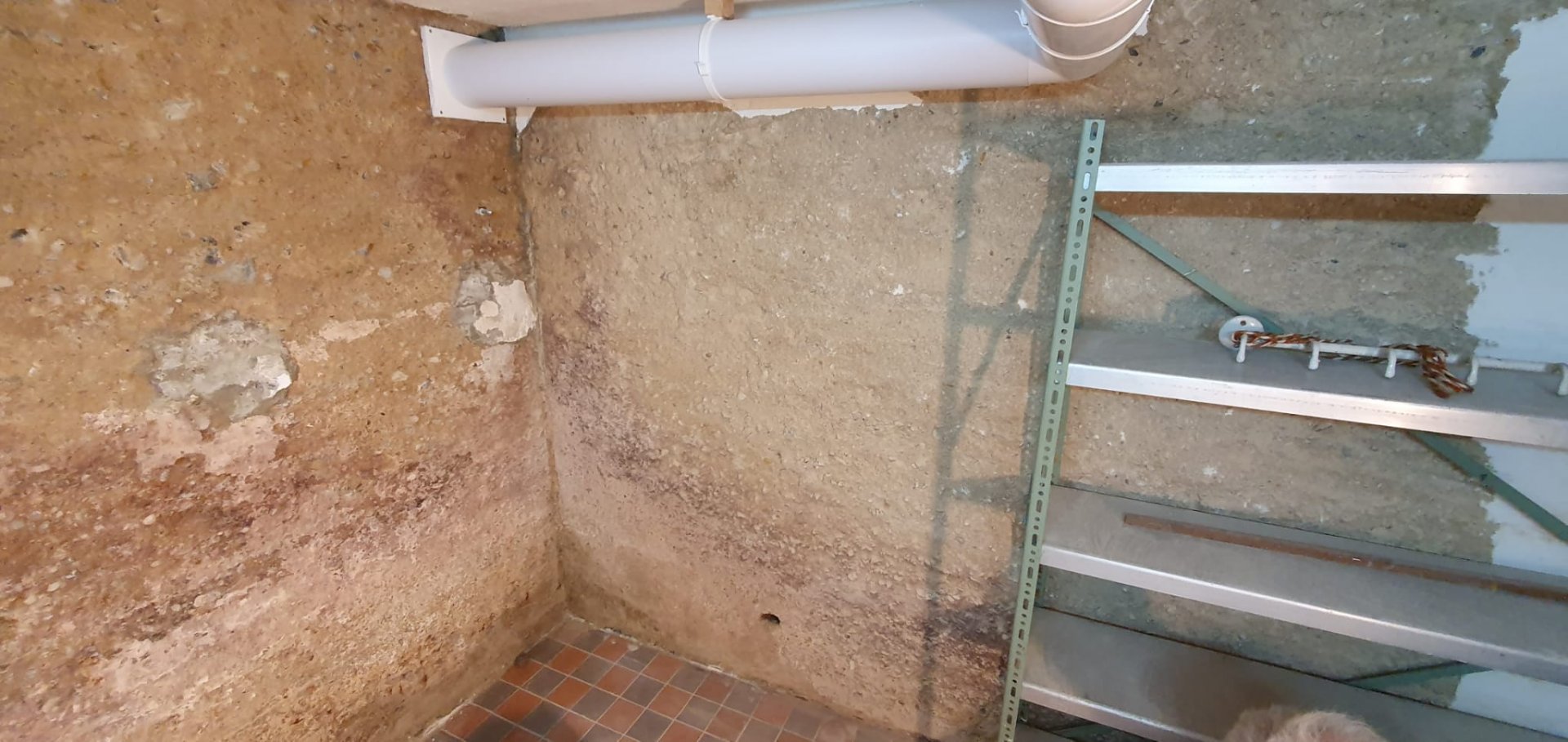 Streifenfundament Stampfbeton freilegen Kelleraußenwand