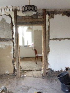 In der Zwischenzeit haben wir etwas Putz entfernt um uns ein Bild machen zu können, was in der Wand ist.