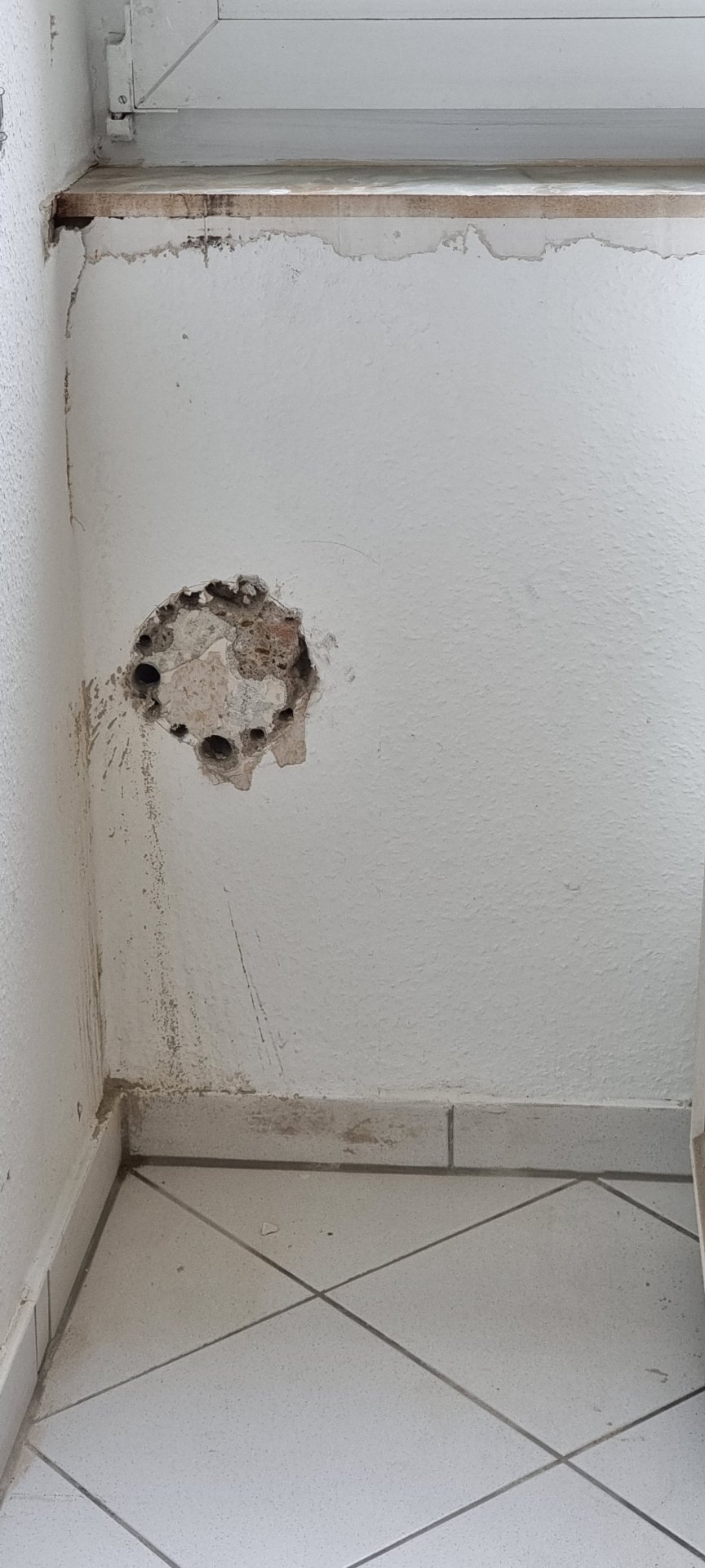 Mein bekannter hat um Hilfe und Rat gebeten einen Lüftungsloch für eine Abzugshaube unter dem Fenster anzubringen.