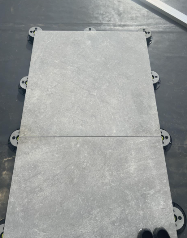 2 cm Terrassenplatten auf Stelzlagern unter freiem Himmel