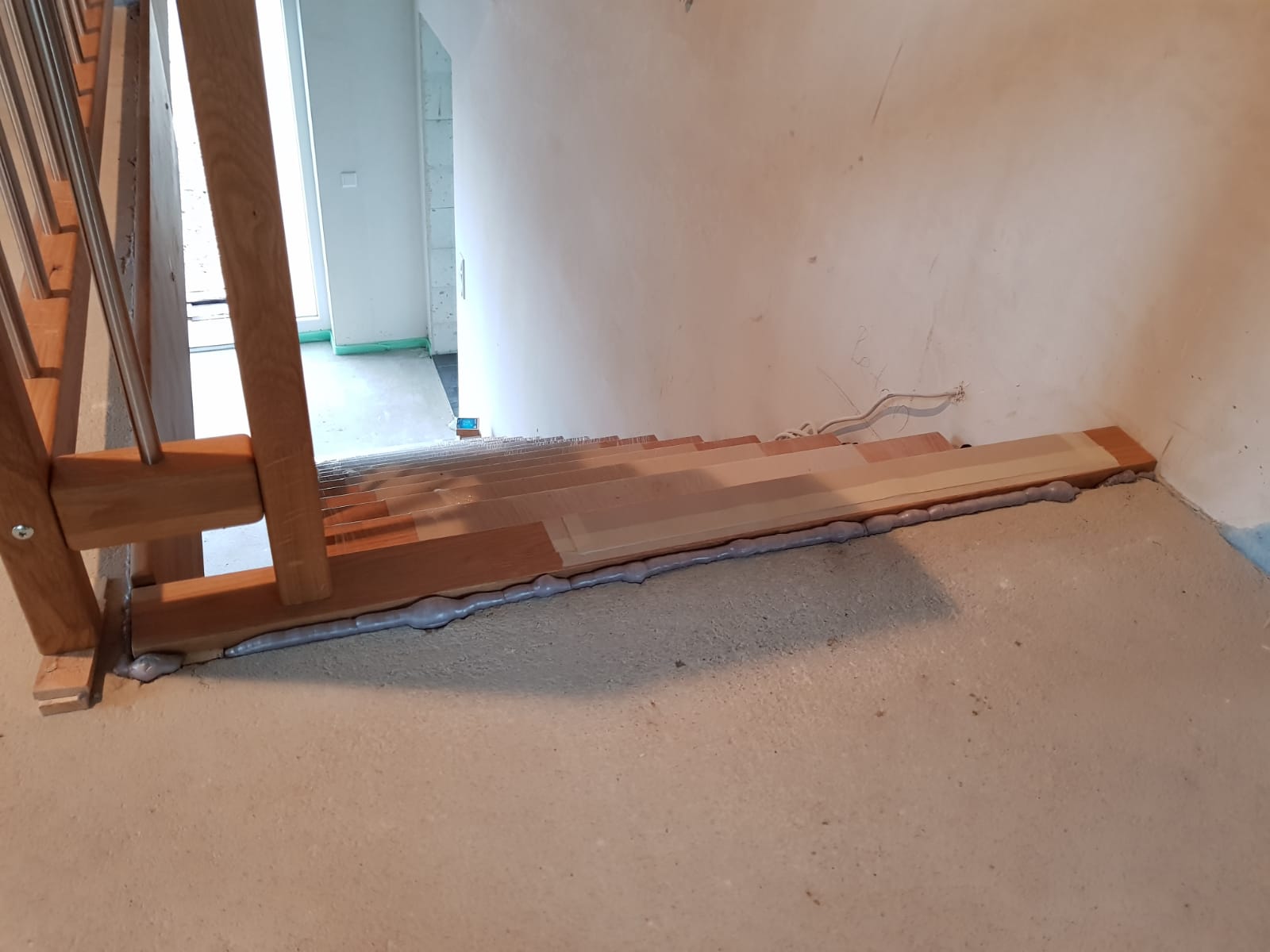 Übergang Estrich zum Stirnbrett der Treppe?: Hallo zusammen, ich habe da mal wieder eine Frage und zwar geht es darum den Spalt zwischen Estrich und dem Stirnbrett der Treppe oben bei der... -