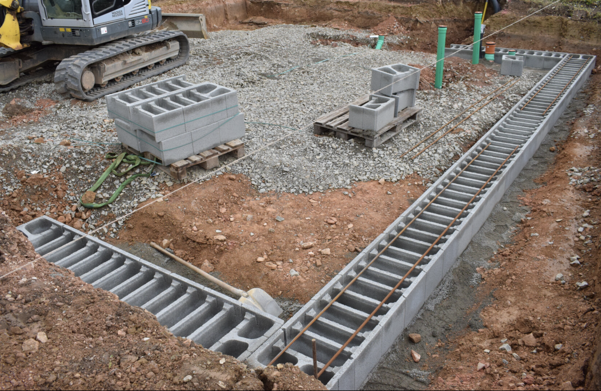Streifenfundamente aus Beton-Schalungssteinen für EFH
