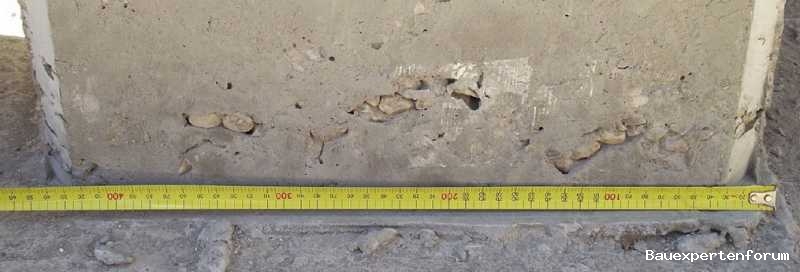 Anhand der Bilder bezweifel ich, dass der INNENrüttler ganz unten war. Das nächste Mal aufpassen, und dann muss man so was schwachsinniges machen wie den Innenrüttler an die Schalung zu drücken. Deine Fragen diesbezüglich hatte ich schon beantwortet (Frequenz etc.).