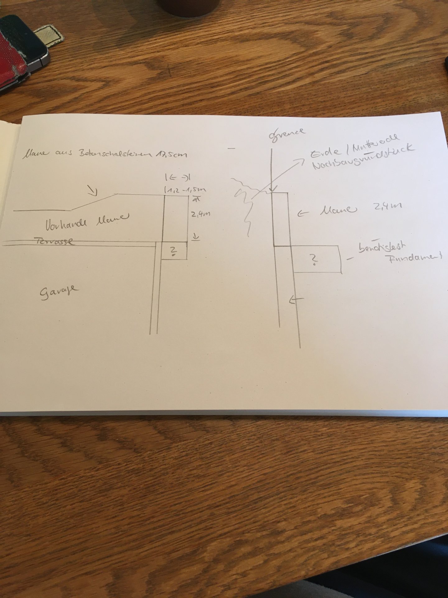Diskutiere Stützmauer / Fundament im Beton- und Stahlbetonarbeiten Forum im Bereich Neubau; Hallo zusammen , Ich hoffe die Profis können mir weiterhelfen Muss eine Stützmauer erweitern . Maße : 1,2 Meter breit und 2,4 hoch Was vorhanden...