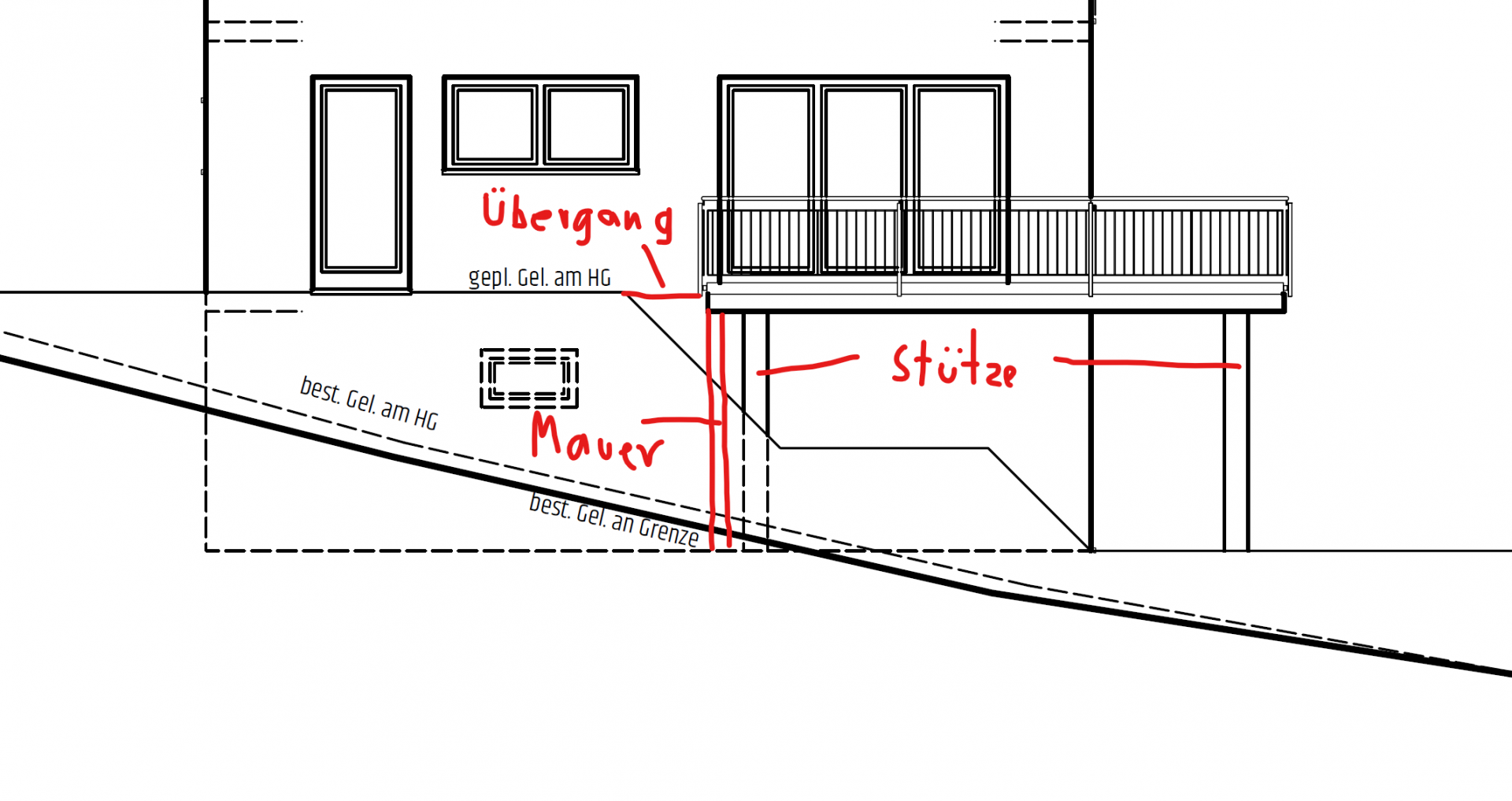 Stützmauer unter Balkon Hangrundstück