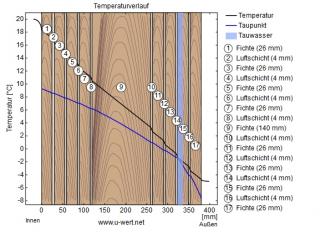 Diskutiere Taupunktkurve im Bauphysik allgemein Forum im Bereich Bauphysik; Hallo, ich untersuche derzeit ein Wandsystem auf Tauwasser und habe ein Problem mit der Berechnung der Taupunktkurve (blaue Kurve in der...