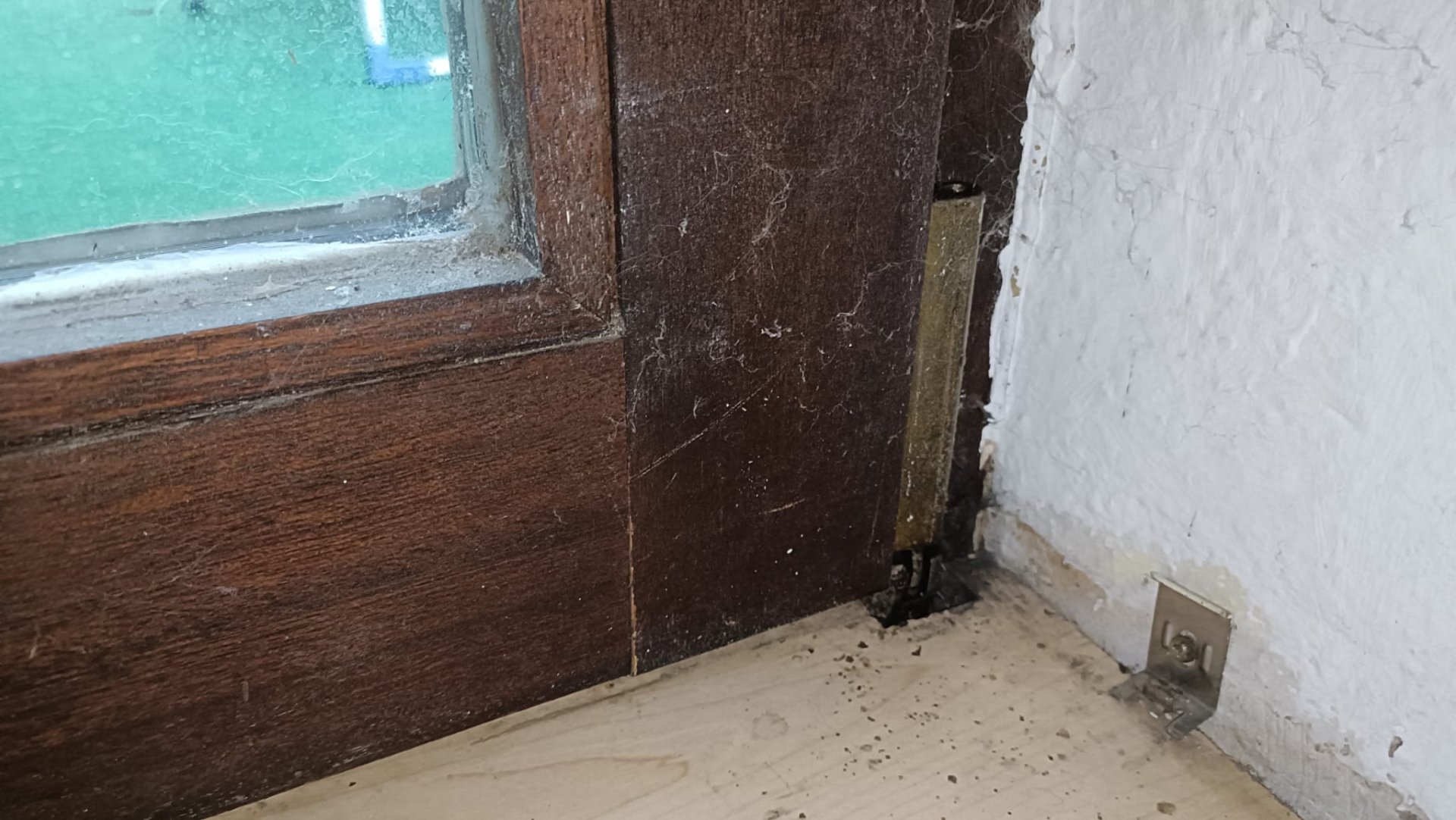Terassentür Gelenk kaputt, mit Schiene Tür festmachen