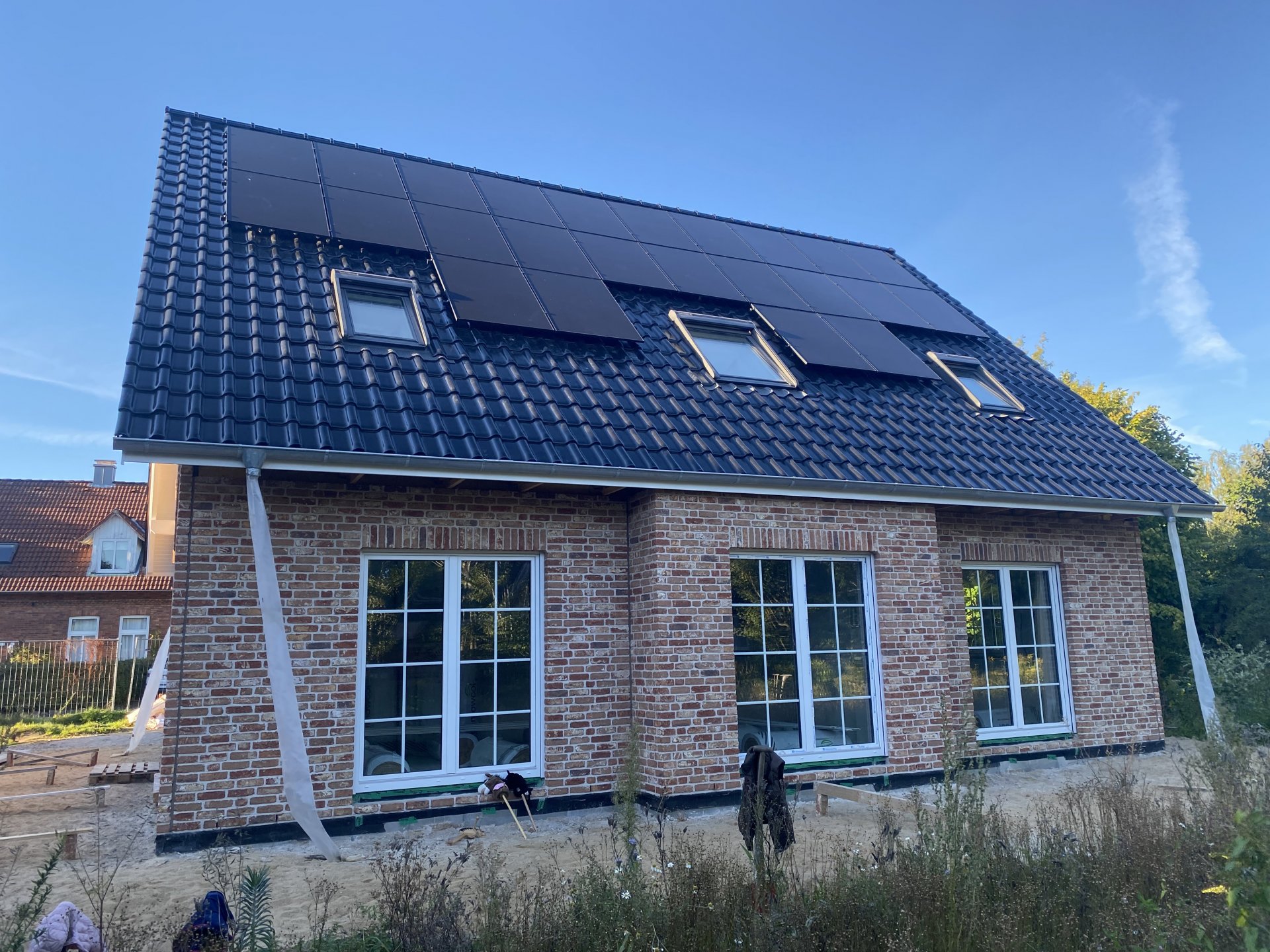 Terrasse direkt an Verblendfassade // Entwässerungsschlitze überbauen? Mauerwerk schützen.