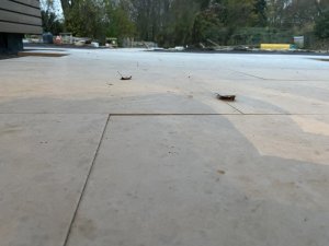 Terrasse Platten verlegen Feuchtigkeit und Frost?: Hallo, unser Terrassenbeläge ist zu einem Drittel gelegt. Der Splitt ist komplett aufgetragen. Jetzt schneit, taut und friert es. Die Sockelwand... -
