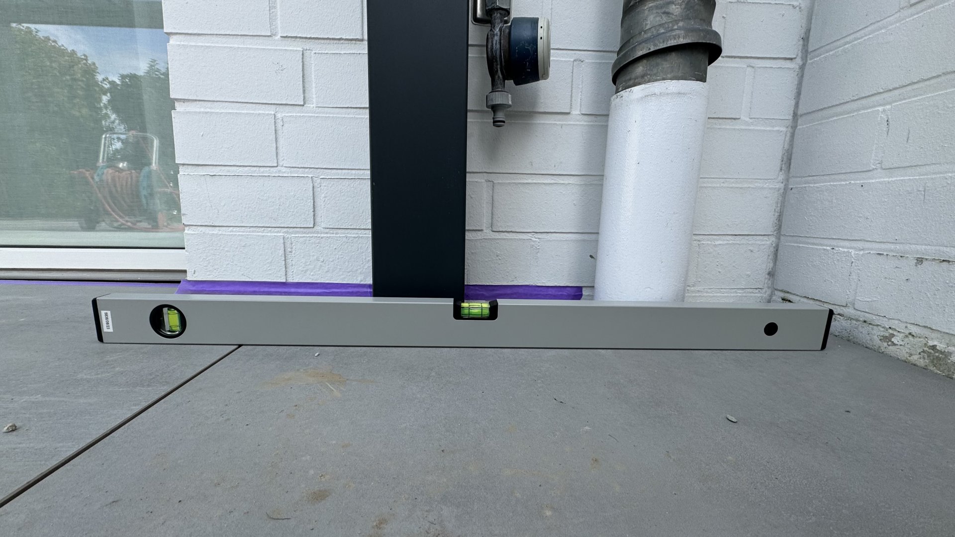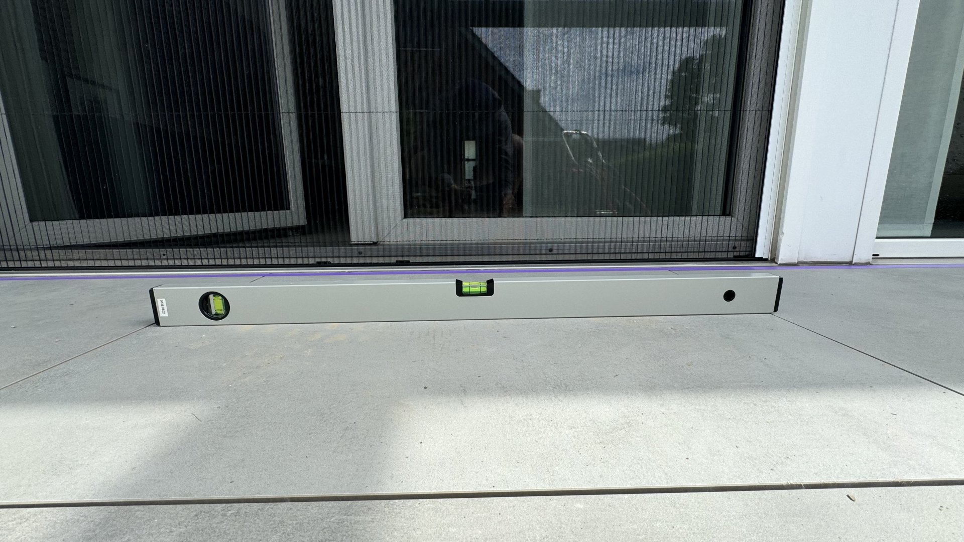 Wasserwaage vorne auf die Terrasse, von li. nach re.