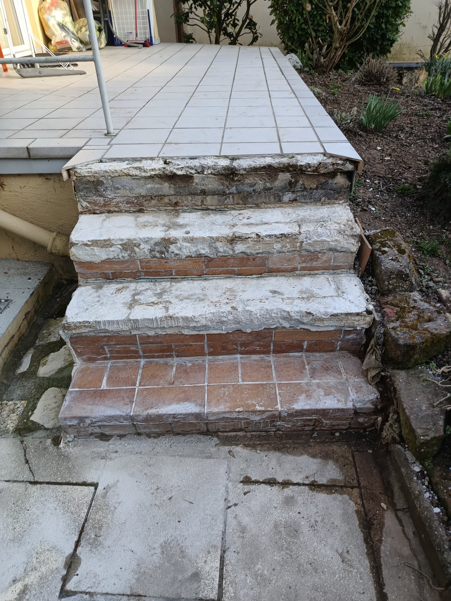 Diskutiere Terrassentreppe reparieren im Außenanlagen Forum im Bereich Rund um den Garten; Hallo zusammen, bei meiner Terrassentreppe waren die Fliesen abgeplatzt. Nun wollte ich das neu machen, und beim entfernen der alten Fliesen auf...