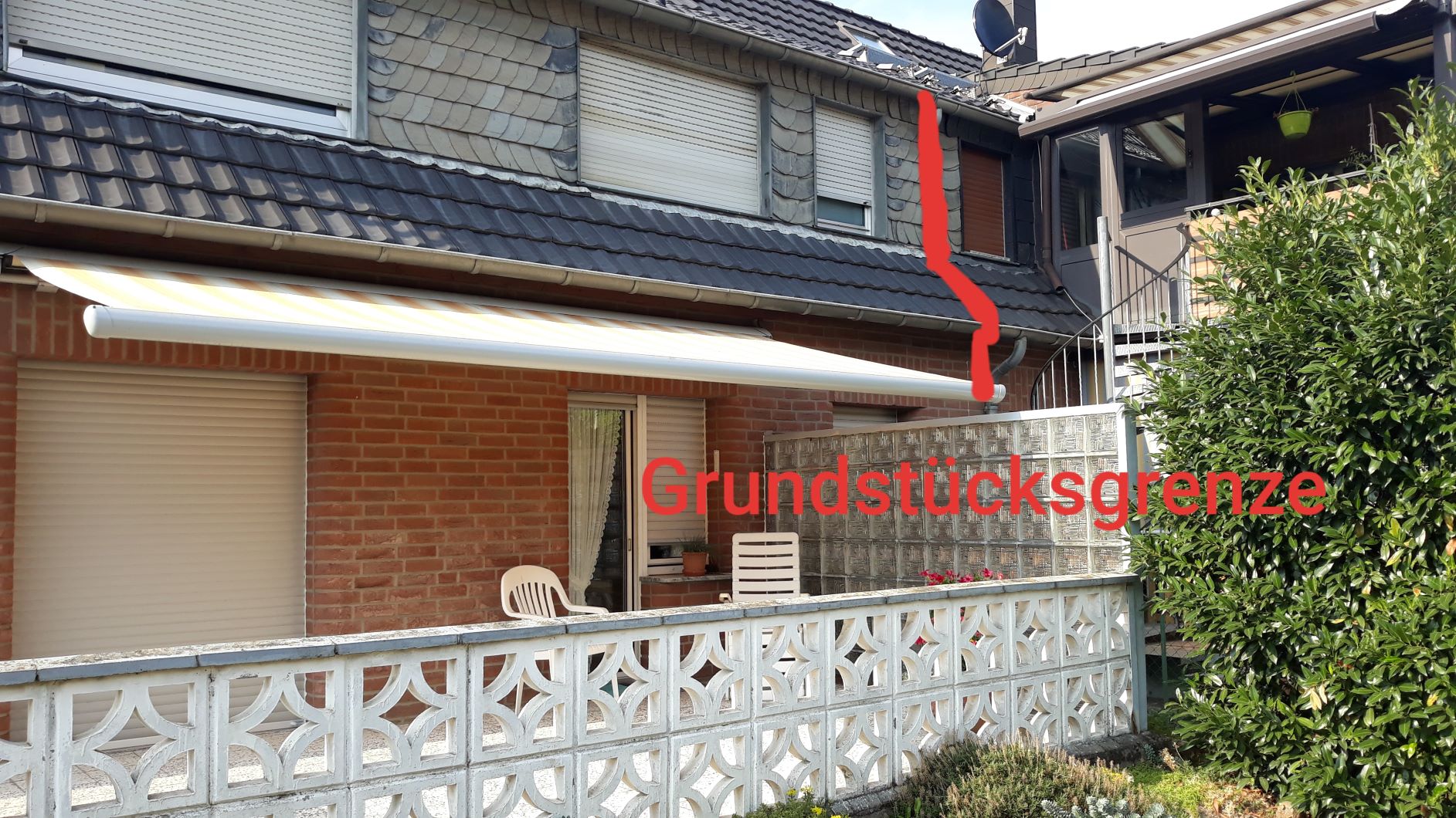 Diskutiere Terrassenüberdachung massiv/betoniert im Außenanlagen Forum im Bereich Rund um den Garten; Guten Abend, um größtmöglichen Sicht- und Schallschutz gegen einen seitlichen Balkon der Nachbarn (Entfernung nur 2 m) zu erreichen, kam mir die...