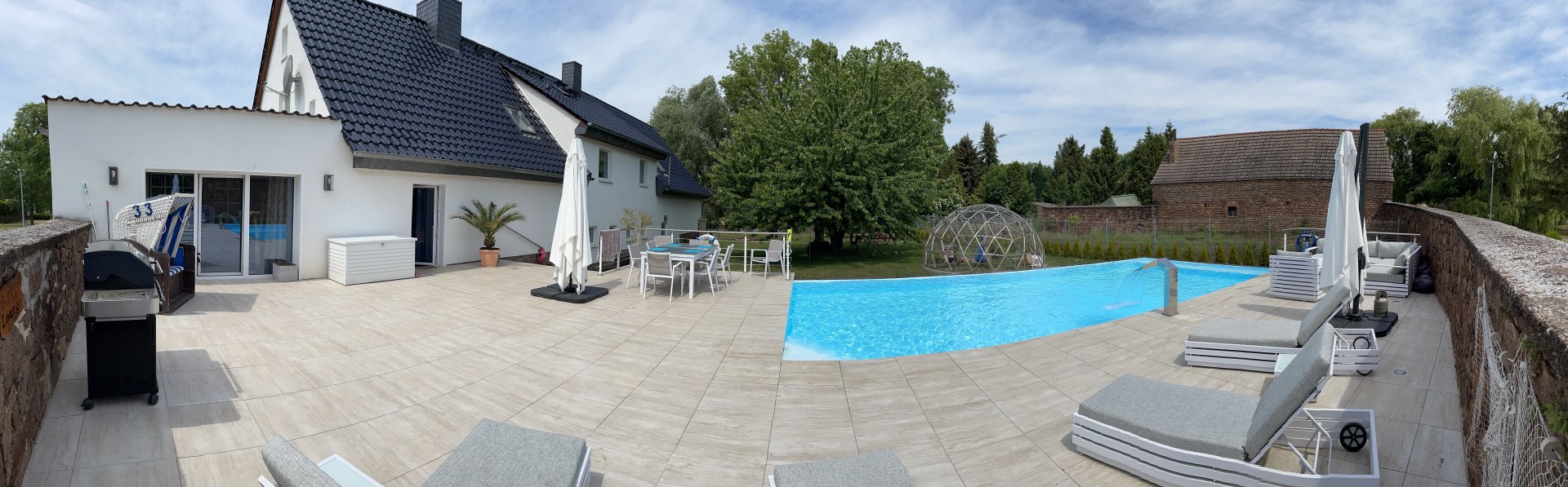Ich glaube, hinter der Mauer ist "Aussicht". Es wird aber irgendwie einen Zugang zum Grundstück geben, den Pool hat man ja nicht per Hand gegraben.