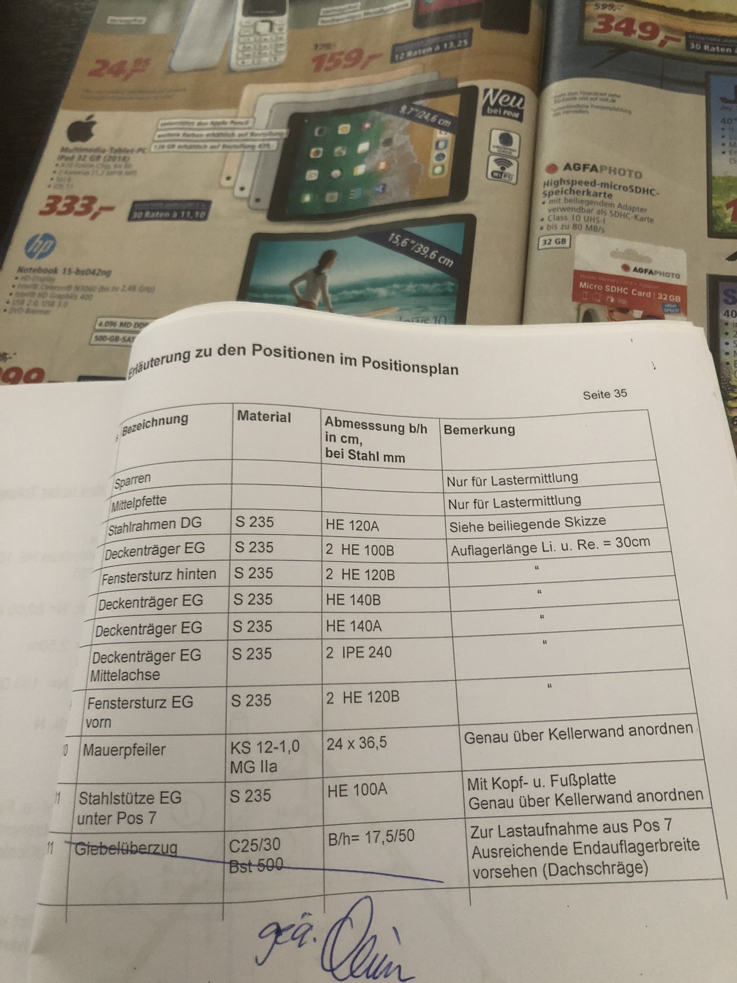 Unterzug / Stütze / Eingelassener Träger: Guten Abend zusammen, ich bin Silas und lese schon länger in diesem tollen Forum mit. :-) Wir haben für ein EFH in Ziegelbauweise unseren... -