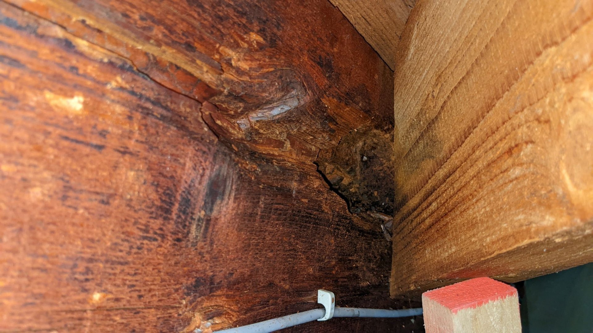 Dunkle Stelle im tragenden Dachbalken (Neubau)