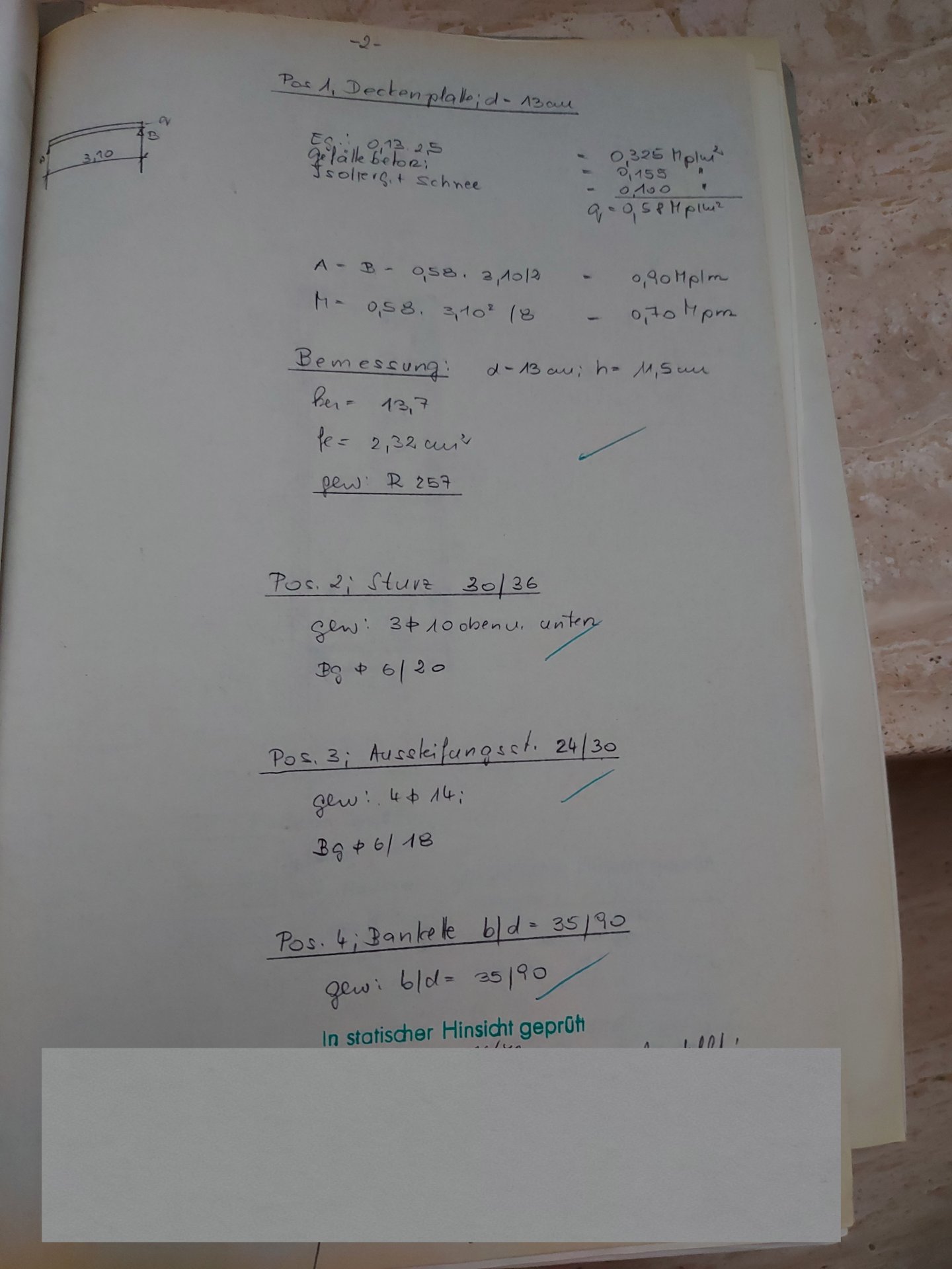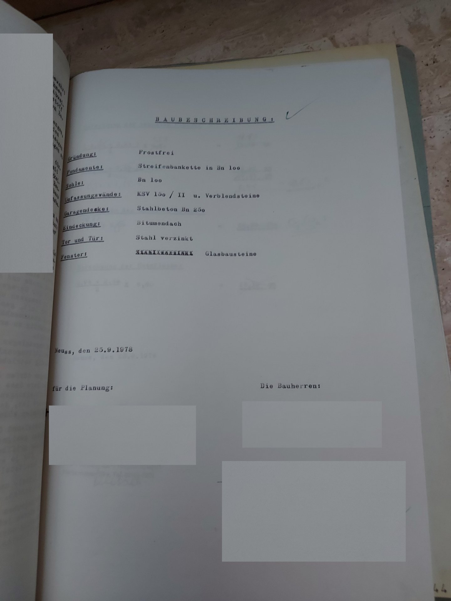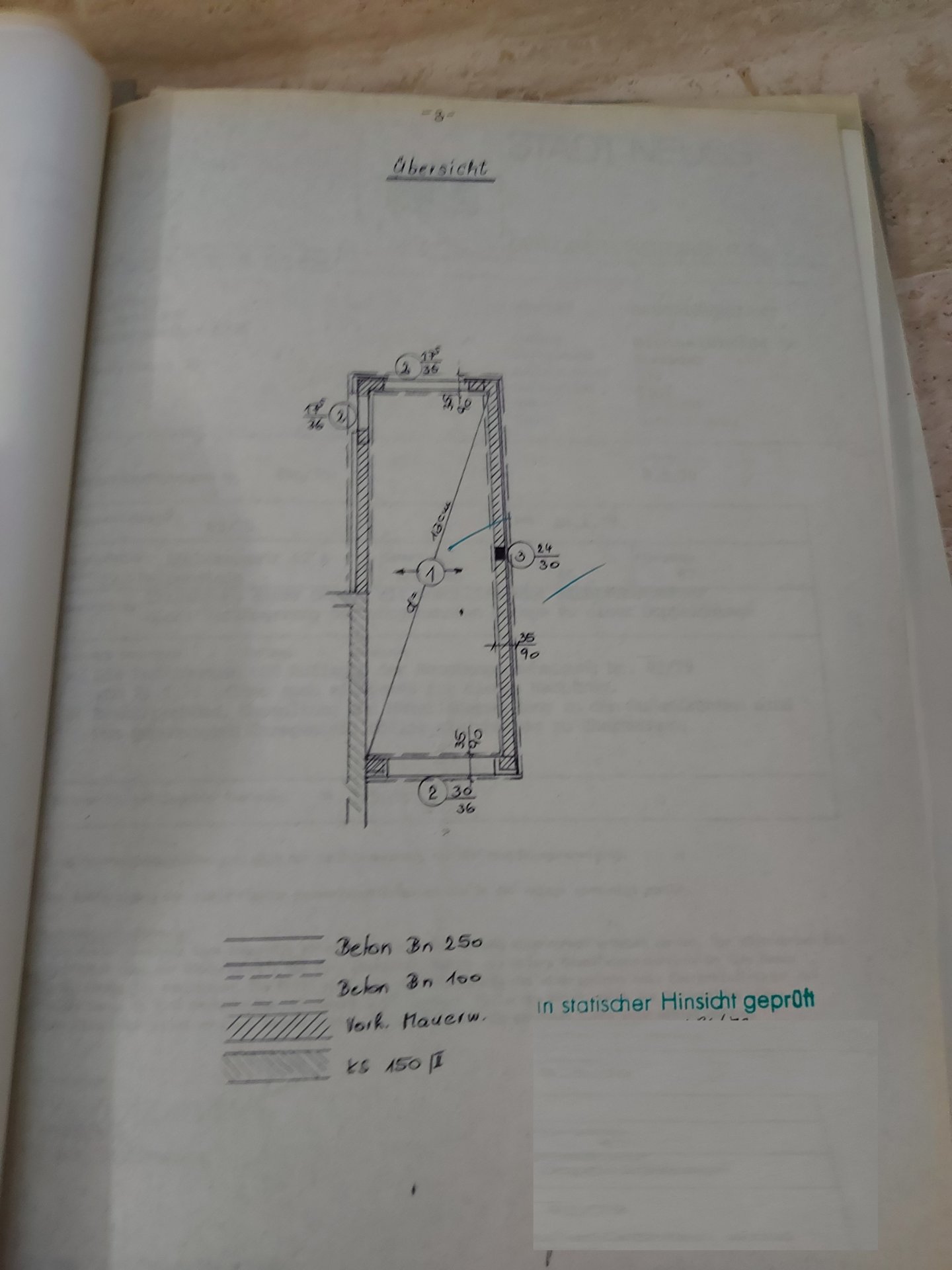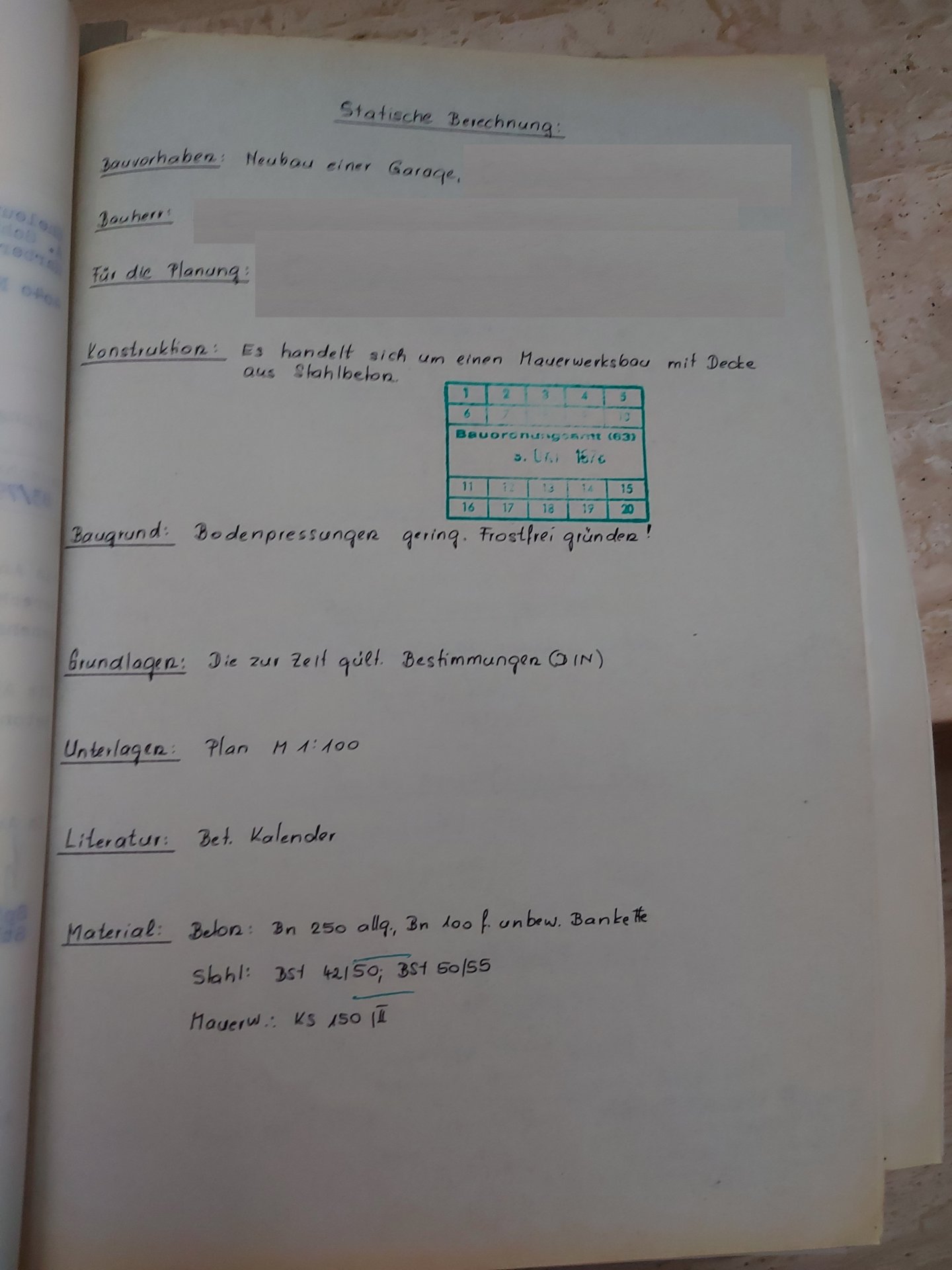 Anbei die Berechnungen des Statikers aus dem Jahr 1978. Aus Datenschutzgründen habe ich die Namen der damaligen Eigentümer entfernt.