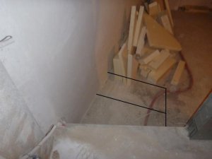 Einbau Treppe 1.Stufe Flacher und direkt auf Laminat gestellt.