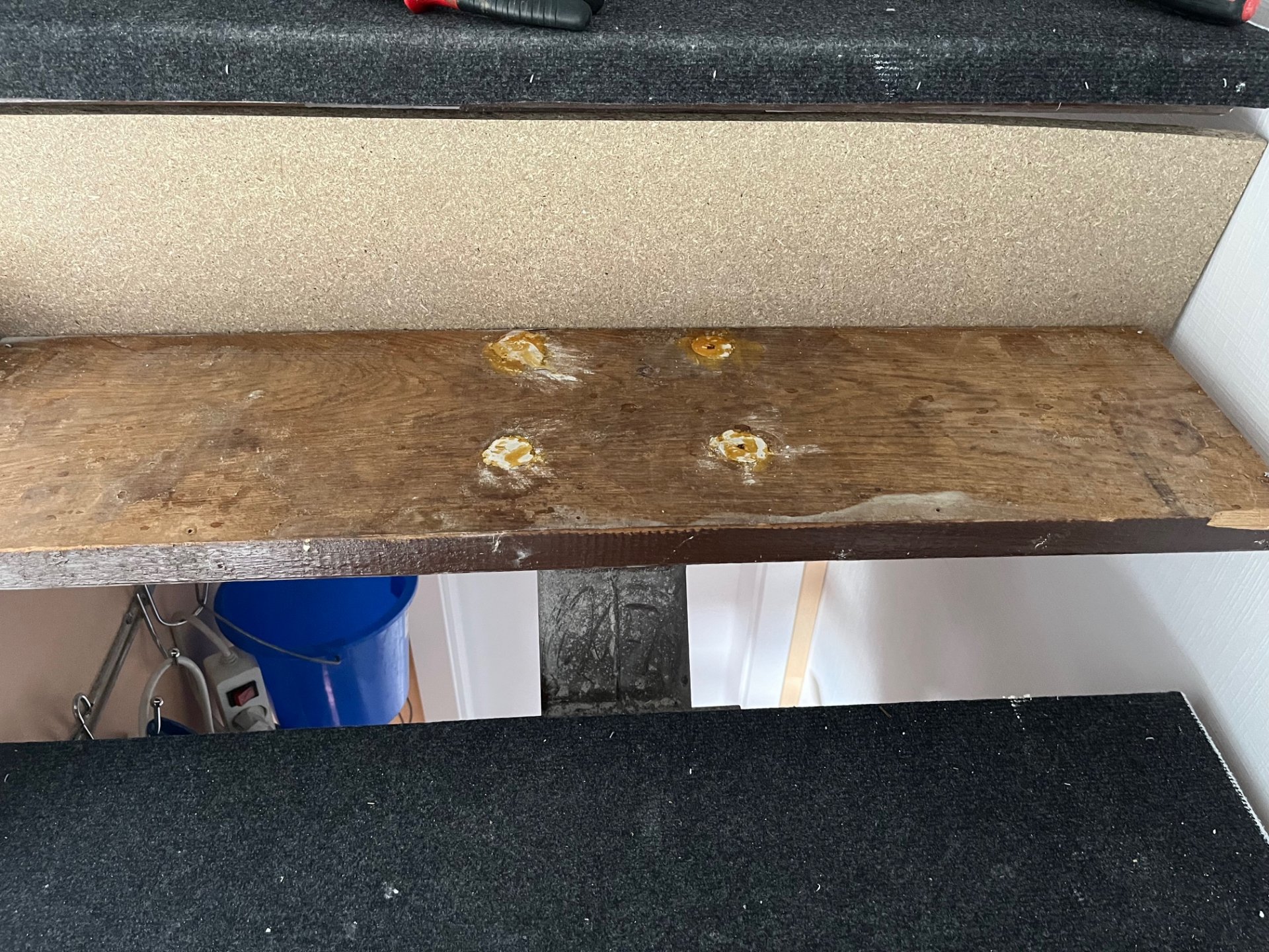 Treppenstufe löst sich - wie wieder befestigen?: Hi Leute, unsere Vorbesitzer haben die Treppenstufe wohl entweder nicht richtig befestigt, oder sie hat sich mit der Zeit gelöst. Oder beides....