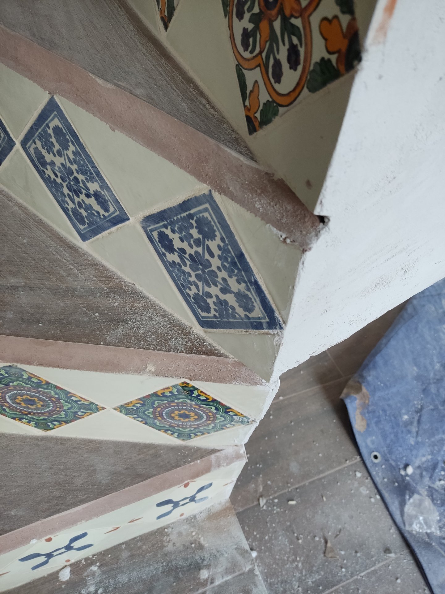 Die Treppe wurde gegossen und danach wurden die Fliesen angebracht