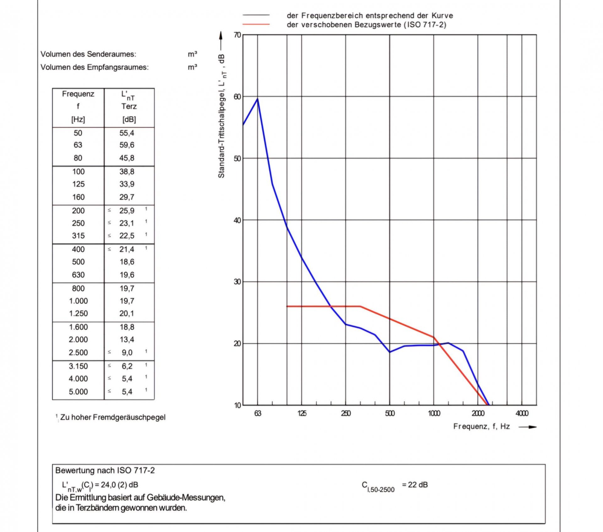 Das Gutachten zeigt in den tiefen Freuqenzen bei 63 Hertz eine Lautstärkenerhöhung von fast 60 dB. Also wirklich sehr laut. (siehe Skala Anhang)