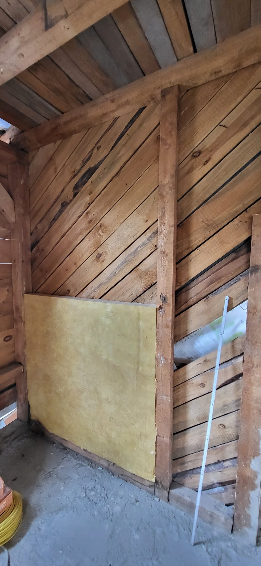 Die Wange bzw. die Wand soll zuerst ( wie bereits zu sehen) mit 8cm MW und dann davor nochmal mit 10cm PUR Dämmung in einer noch zu errichtenden Wand gedämmt werden.