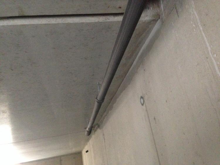 Ich möchte im Keller unseres Neubaus zwei Trockenbauwände mit Türen einziehen (aktuell ist der Keller nur ein großer Raum. Bei der ersten Wand sehe ich da kein Problem, bei der zweiten Wand läuft oben an der Decke ein Rohr entlang (siehe Foto).