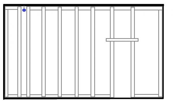 Es sollte der erste Ständer aber direkt vor dem Rohr setzen. Die Achsabstände aber von der Wand einstellen.