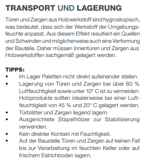 bei vielen Türenherstellern steht die Lagerung sogar in der Auftragsbestätigung oder am Lieferschein