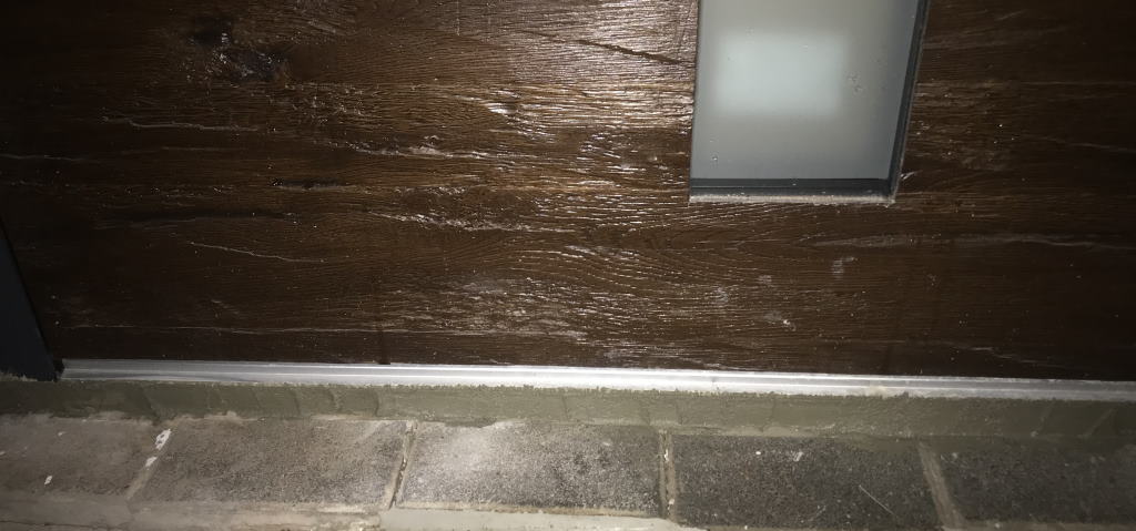 Wenn die Dichtigkeit nicht gewährleistet ist wie in diesem Fall quillt das Holz auf oder fault mit der Zeit. Die Tür hängt dann irgendwann.