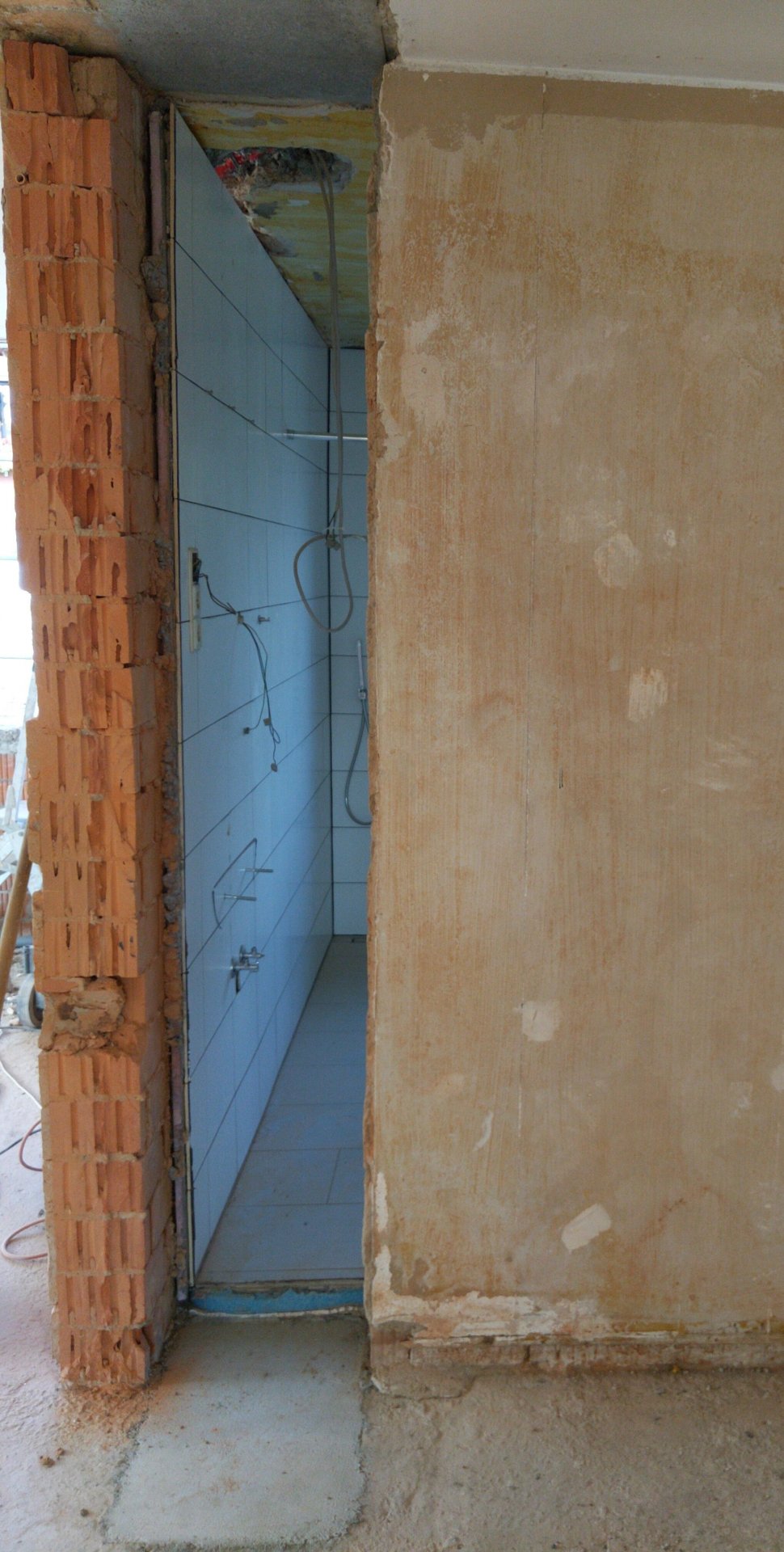 Fliesen und Türstock: Hallo, Habe ein kleines Problem - am Bild sieht man es recht gut. am 2.11. kommt der Installateur und baut den Rest ein (Waschbecken, WC,...