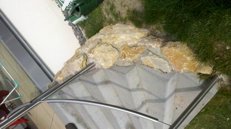 Diskutiere Ummauerung einer Betontreppe mit Naturstein im Außenanlagen Forum im Bereich Rund um den Garten; Liebe Leser, letztes Jahr wurde die Beton-Treppe von der Terasse zum Garten mit Natursteinen "verkleidet" und mit einem Geländer ausgestattet....