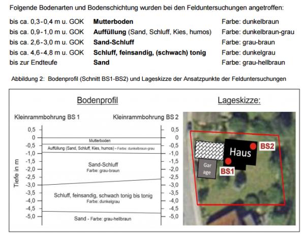 Hier der Auszug aus dem Baugrundgutachten und die Höheneinmessung zur besseren Vorstellung der Situation.
