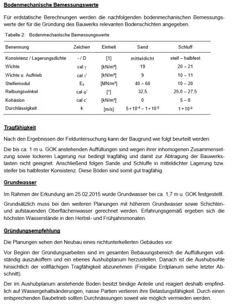 Aus diesen beiden Vertragsinhalten hatten wir geschlussfolgert wenn ein Baugrundgutachten vorliegt muss der Bauträger auch danach handeln und ist dafür haftbar.